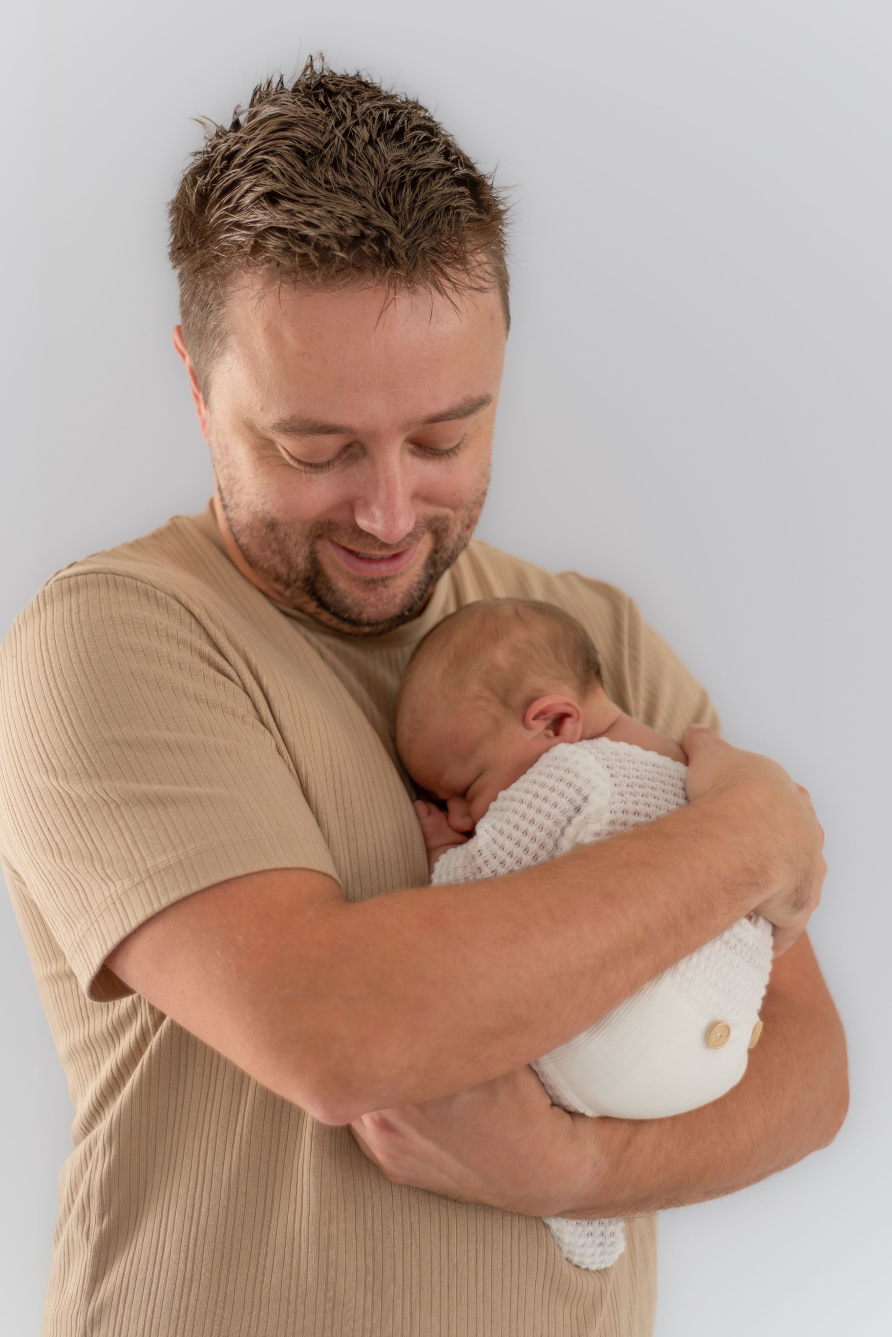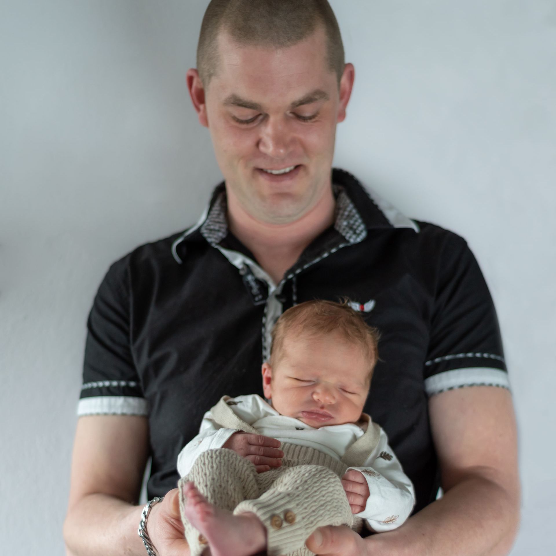 Je ziet het de donshaartjes nog zo mooi zitten op zijn schoudertjes. Hij was veel wakker, en liet zich ook heerlijk knuffelen. Wat een prachtig lief ventje!